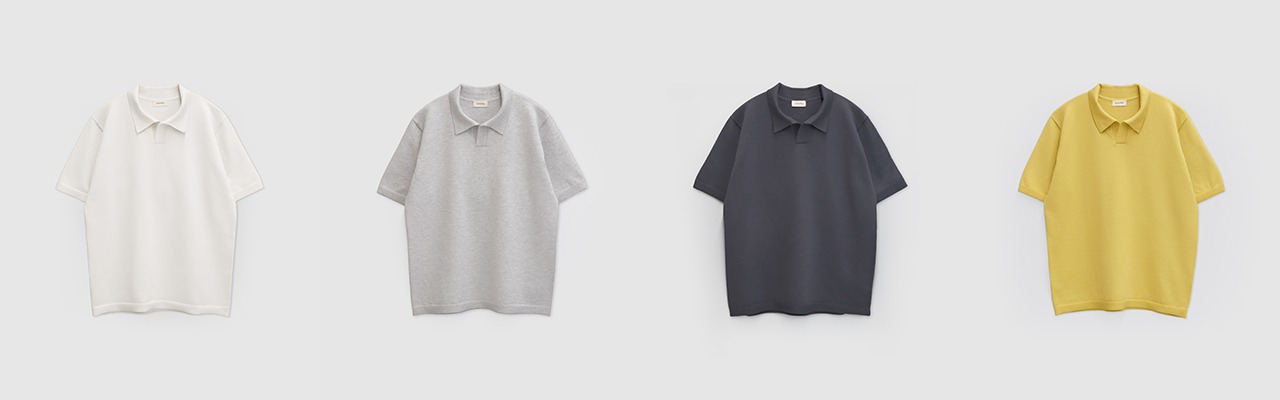 18L(16G相当)の編機で編んだHalf Sleeve Knit Poloは、糸が細く編み目も細かいため肌触りはなめらかで、厚みは一般的なカットソー程度ですが、Half Sleeve T-shirtと編み方が異なるため、よりしっかりとした仕上がりになっています。