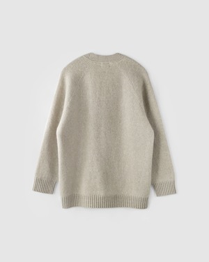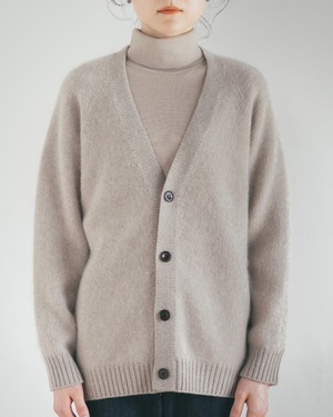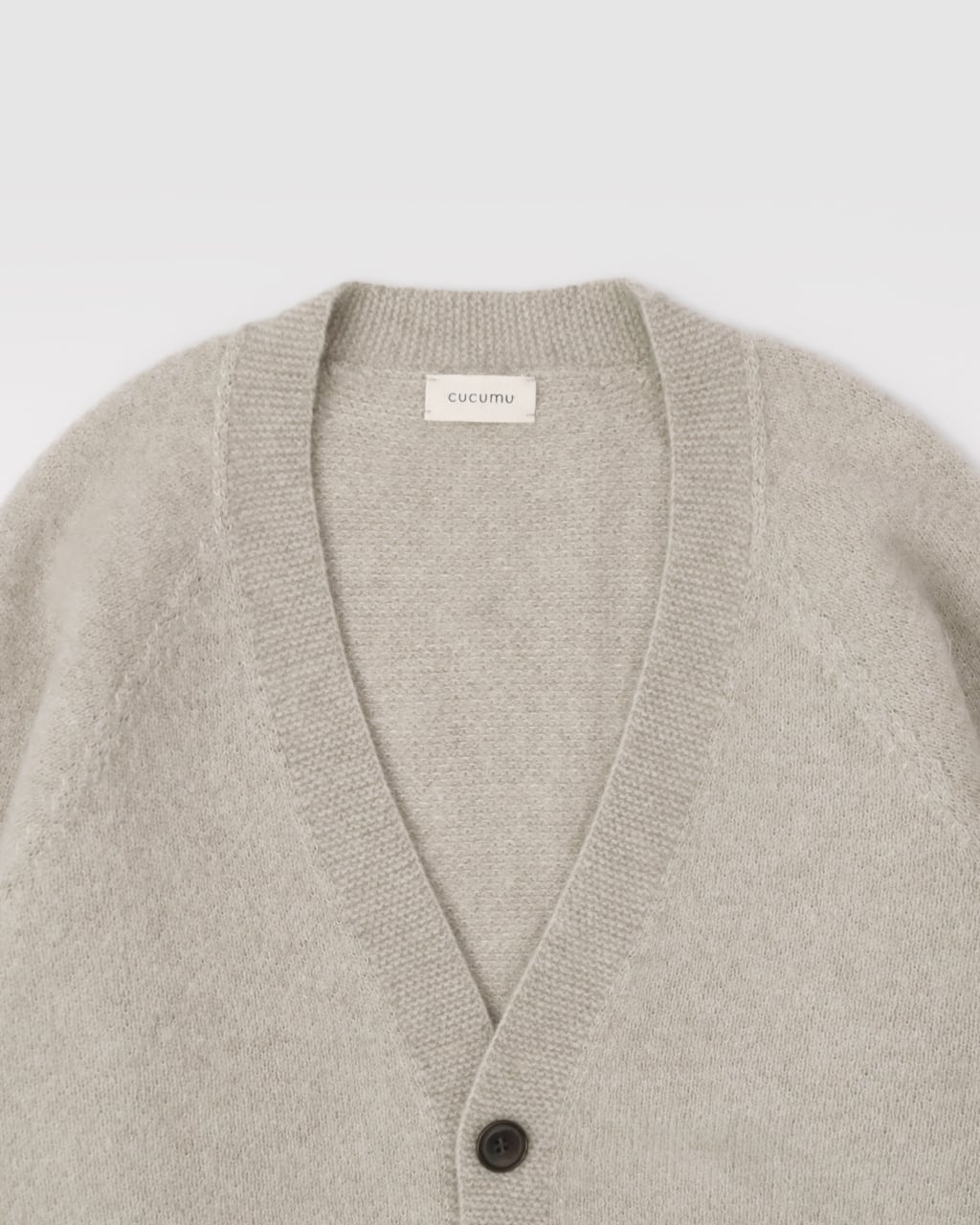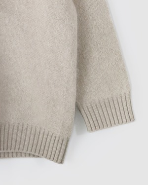南アフリカで2.5%程しかない希少な24.5ミクロンのモヘアに芯はシルクを使用した糸と、高品質なウールと編むことでモヘア特有のチクチクを軽減しました。