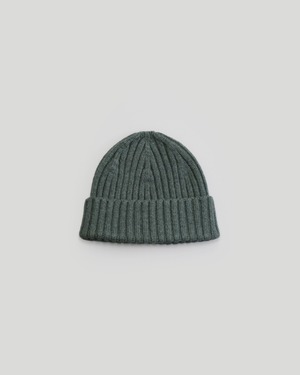 リブ編みで頭の形にそうように目数を減らし、シンプルに編み上げました。